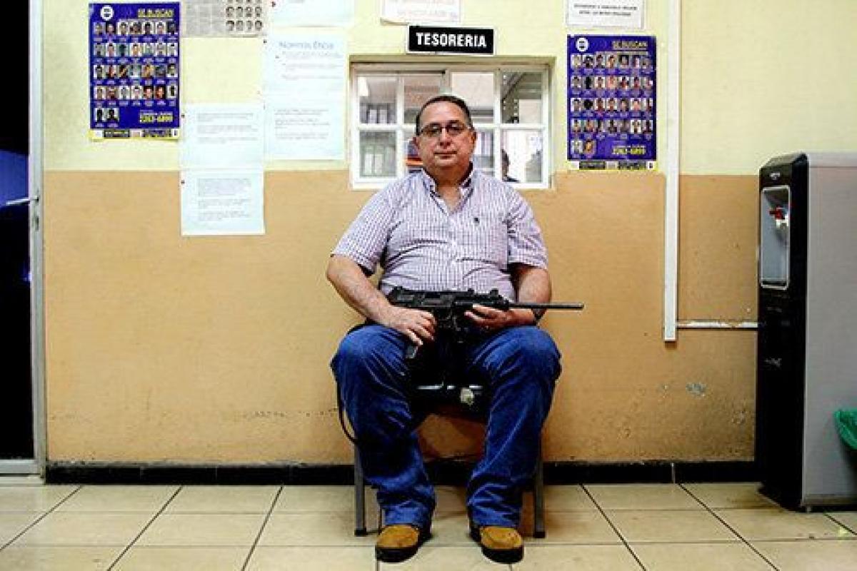 Mauricio Vilanova, de 58 años es desde hace 16 años alcalde de San José de Guayabal. Le planta cara a las maras usando sus mismas estrategias de control de territorio. Recluta civiles para su "lucha". Va armado y le acompaño a patrullar junto a sus hombres por algunas zonas donde hay mayor presencia de las maras. Está amenazado de muerte, sabe incluso que hubo una orden que se giró en el penal para que lo liquiden. Se deja hacer fotos, me habla de su familia, decidió no esconderse.