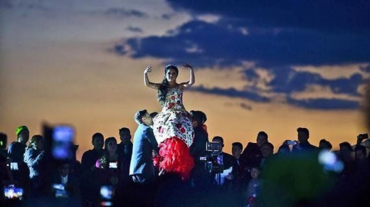 La quinceañera Rubí celebrando su cumpleaños. Foto: Ronaldo Schemidt/AFP