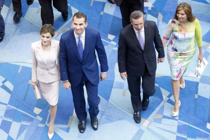 Los reyes, a su llegada al congreso, acompañados por el gobernador de Puerto Rico y su esposa/EFE