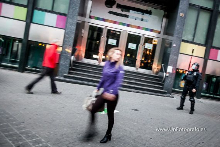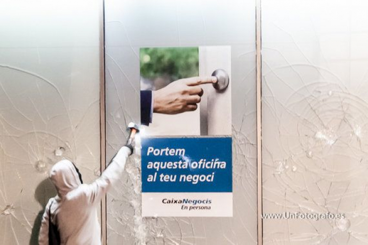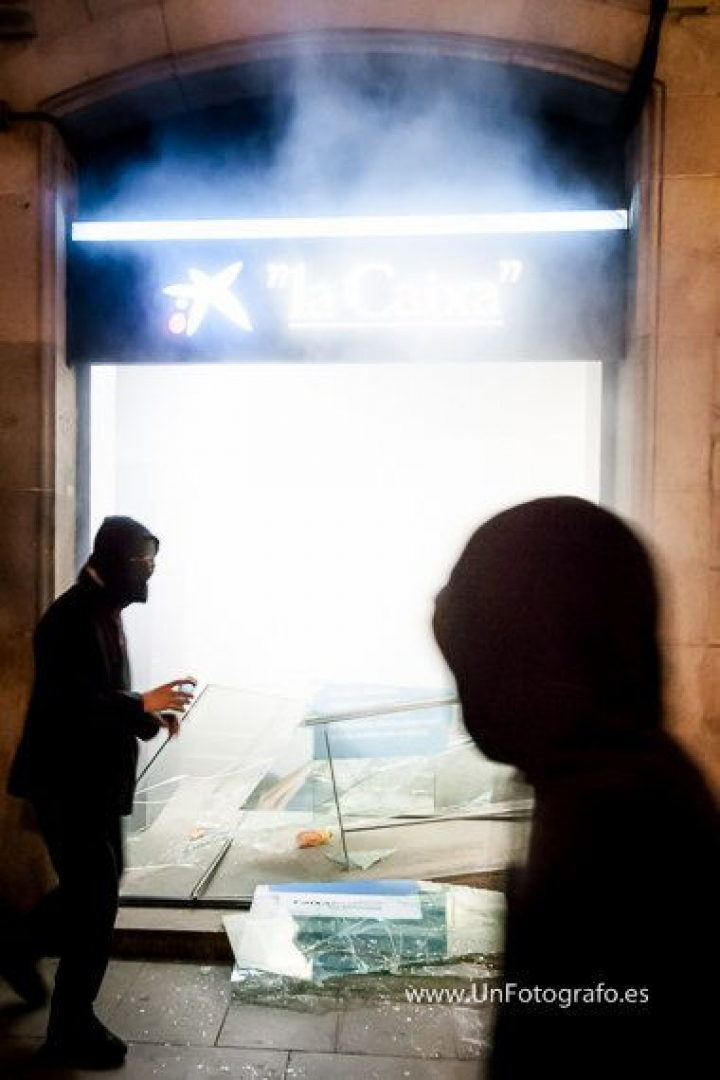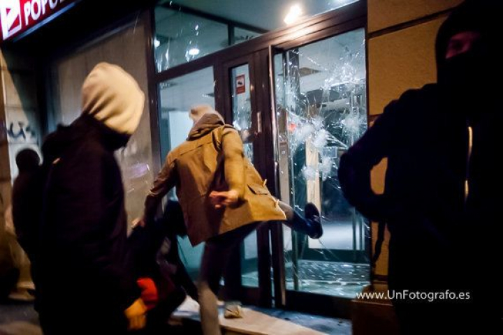 Un porcentaje minúsculo de la manifestación, treinta, cuarenta chicos como máximo, acapara con su rabia y su testosterona el protagonismo mediático. Rompen cuatro cristales, pintan cuatro lemas, queman algún contenedor y si les fotografías se ofenden y te ordenan que no uses la cámara... Y el circo sigue. Y, sí, estas fotografías contribuyen. Por eso escribo, por si alguien leyera el pie de foto...