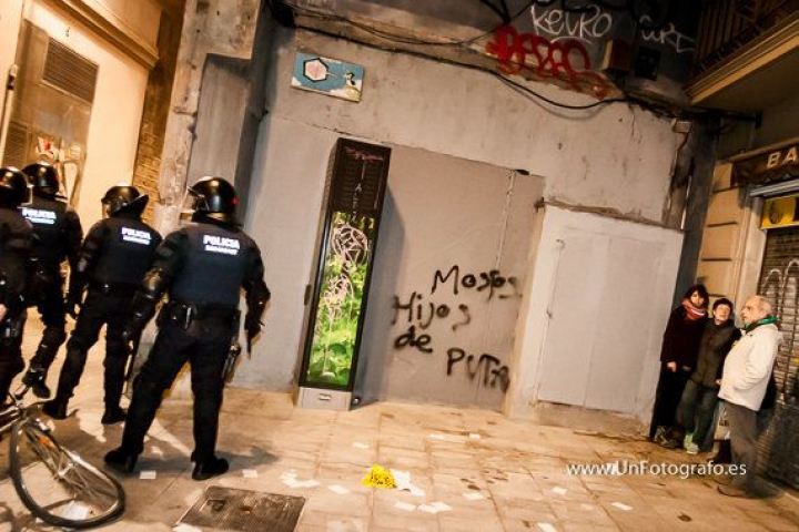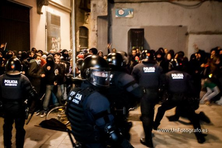 Los antidisturbios cargan contra la tranquila cabecera de la manifestación y encierran a un centenar de manifestantes en un callejón con una salida muy estrecha. Hay golpes de porra, gritos, miedo...
