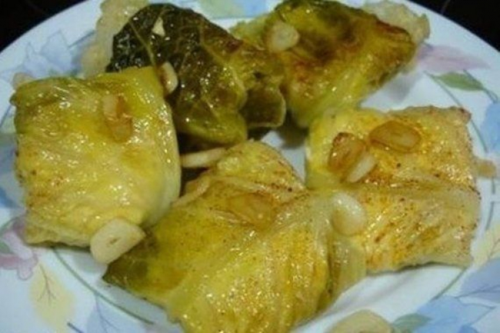 Separamos las hojas de la col o repollo y las ponemos dos minutos en una olla con agua hirviendo, sal y pimienta. Después sacamos las hojas y las dejamos enfriar y secar.