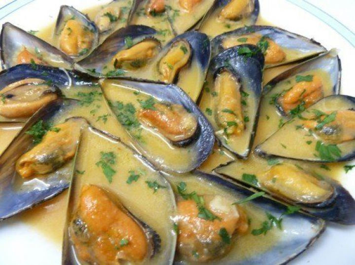 Limpiar los mejillones y ponerlos en un bol con agua durante unos minutos. A continuación, dejarlos en un escurridor. Antes de cocinar los mejillones, ponemos a freír una buena cantidad de patatas. En lo que se fríen éstas, tendremos preparados los mejillones, y es imprescindible que este maravilloso plato se consuma recién hecho.