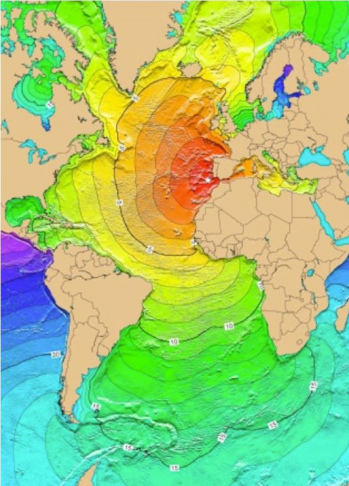 El tsunami se transmitió a lo largo y ancho de todo el océano Atlántico, causando miles de muertos en las costas del norte de África, arrasando puertos de pescadores en la costa inglesa y arremetiendo con virulencia con las islas del Caribe.