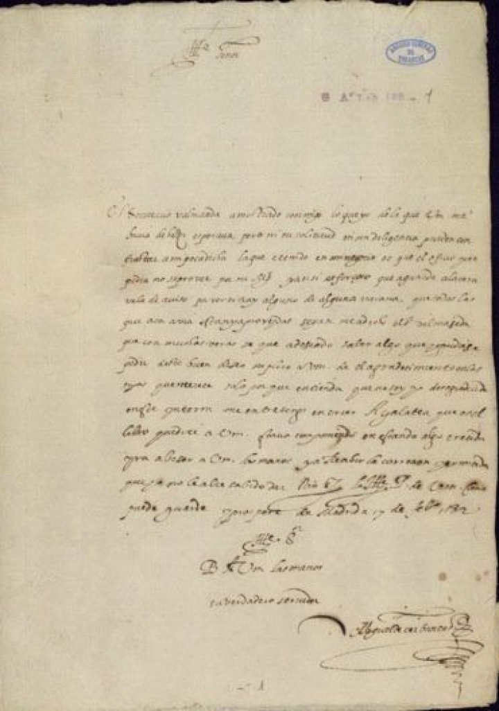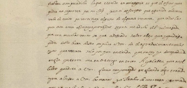 En ellos podemos ver las circunstancias vitales y la evolución del autor de El Quijote. Hay una carta escrita cuando tenía sólo 34 años (más abajo, a la derecha), dirigida al secretario de Consejo de Indias, una especie de ministro que llevaba los asuntos de los territorios españoles en América, a quien le pide una recomendación para que le den un puesto y poder viajar a las Indias. "A los 34 años, Cervantes está ya desesperado, viendo que no consigue solucionar su vida y prefiere 'hacer las Américas". Al finalizar la carta, Cervantes dice: "Bueno, y ahora me entretengo en criar a Galatea [en escribir la novela La Galatea], y cuando esté crecida, irá a besarle las manos [cuando esté terminada, se la llevaré). "Dice 'me entretengo'. Él no se gana el pan escribiendo, está buscando un puesto de trabajo como todos los españolitos de hoy en día, y se entretiene en escribir Galatea. Esas pinceladas te permiten descubrir un montón de cosas de los autores".