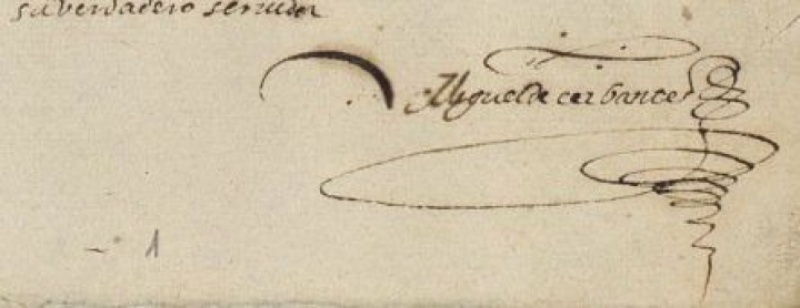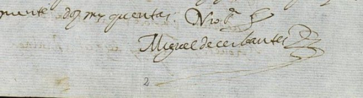 También llama la atención la cuestión de las firmas, llena de volutas en su juventud y mucho más sencilla en la madurez: "Hay al principio una firma más pretenciosa, más arrogante, típica de una persona joven, cuando pretendemos y queremos conquistar un puesto en el mundo: 'Aquí estoy yo'. Pero cuando no está en un contexto en el que quiere quedar bien, hace una firma más modesta. Hasta que ya al final, se queda con lo esencial, sólo 'Miguel de Cervantes': 'aquí estoy, hecho polvo, viejo, con el pie en el estribo, lo que nos ocurre a todos cuando estás cerca del final, que te das cuenta de que sólo hay tres o cuatro cosas importantes en la vida".