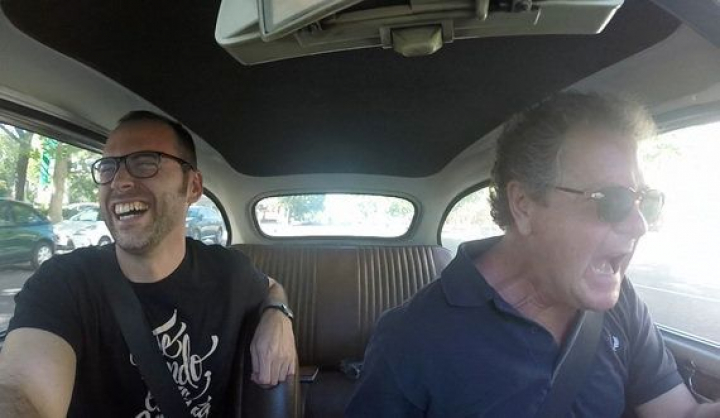 Basta con ver la cara de Juan Luis, la mitad del dúo Gomaespuma, cuando coge el volante del 600 y pone la primera. Me imagino que muchos recuerdos vinieron a su mente, su padre tenía uno igual, así que era fácil que recordara momentos de un pasado que ya forman parte de su historia personal.