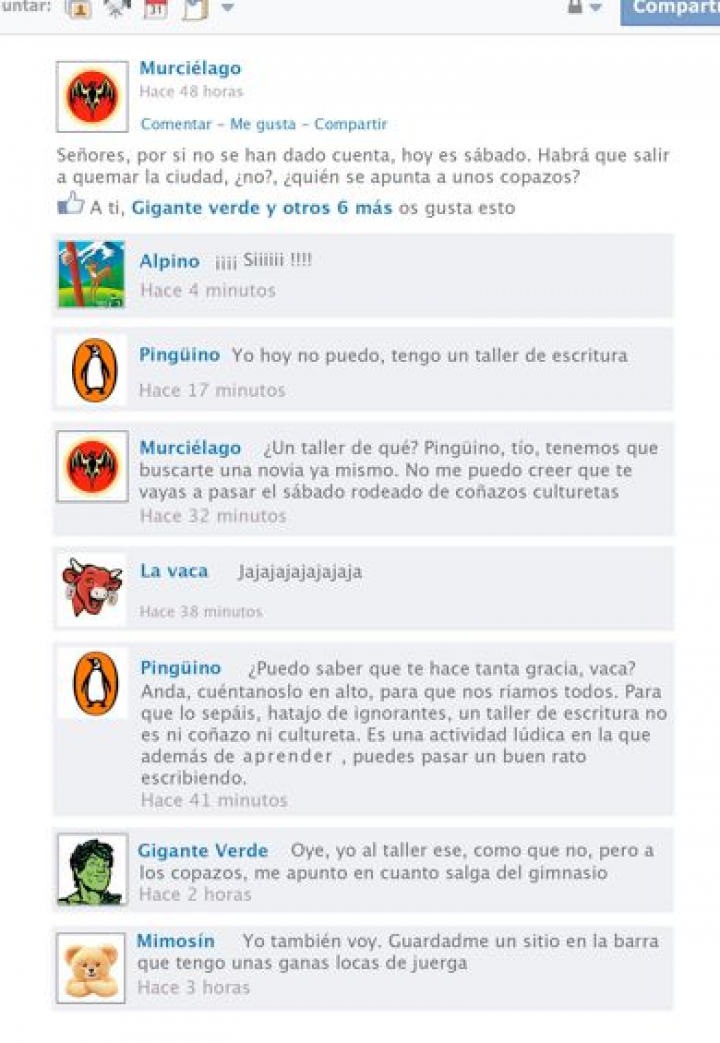 En el taxi, de vuelta a su apartamento, abrió el sobre que le había dado el Capitán Pescanova. Tal como éste le había dicho, no había casi nada: su copia de las llaves de casa, un par de billetes, unas cuantas monedas y el móvil. Mister Proper decidió cotillear éste último. Primero consultó las llamadas entrantes y salientes de los últimos días. Todo parecía normal. Había algún número que no conocía, pero aparte de eso, nada que le llamara la atención, ni en los mensajes de texto, ni en los de voz. Después se metió en Facebook. A la red social por excelencia, también le habían afectado los años de crisis, pero aunque en el mundo exterior ya solo se conectaban a través de ella unos cuantos nostálgicos, en Marketinia las cosas evolucionaban mucho más despacio, y el Caralibro aún tenía cientos de fans. Pero Mister Proper no era precisamente uno de ellos. De hecho, ni siquiera tenía perfil, pero su novio sí, así que se metió en su biografía a ver si encontraba algo interesante. Y lo hizo. Hacía un par de días, Mimosín había puesto un comentario en un post de Bacardí, el tipo más noctámbulo de la ciudad. Nadie tenía muy claro qué hacía aquel murciélago durante el día, pero todos sabían que en el momento en que se ponía el sol, él empezaba su ronda de bares, que no acababa hasta el amanecer. De vez en cuando, el vampiro utilizaba las redes para tratar de atraer seguidores a sus correrías nocturnas. A decir verdad, casi nadie solía hacer caso a aquellos llamamientos, pero por lo que sea, aquel día había tenido cierto eco.