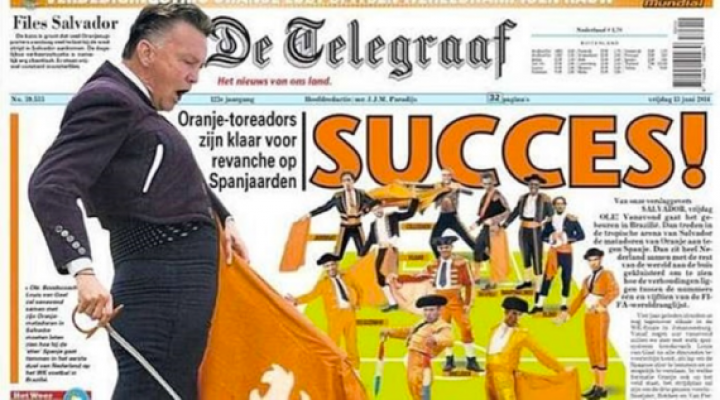 Las previas a los partidos habían explotado la visión taurina de nuestra selección, como ese montaje holandés que vestía a Van Gaal de torero dispuesto a someter a España en la Arena (nunca mejor dicho) de Fonte Nova. Y así sería, porque la afición naranja acabó cantando por oles los pases de su equipo durante la segunda mitad.