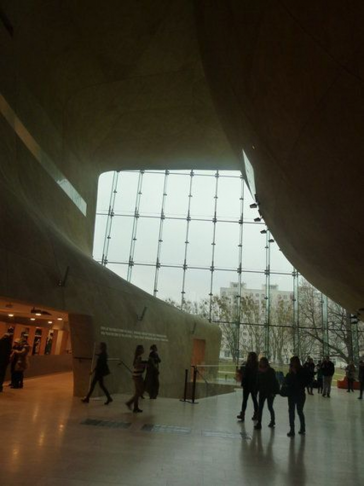 El paisaje que rodea al museo resulta, en un día como este, sobrecogedor. Estamos a tres o cuatro grados bajo cero, el cielo es tan gris que parece que se va a desprender sobre nuestras cabezas, los árboles que rodean al edificio se yerguen pelados y míseros, sólo unos escolares de vuelta a casa y una anciana que pasea a su perro se atreven a cruzar la plaza. Y sin embargo, el museo está lleno, sobre todo de gente joven, de estudiantes, de turistas, de familias, algunas personas mayores, algunos extranjeros con aspecto de profesores.