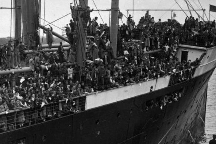 Jóvenes refugiados españoles de la Guerra Civil llegan al puerto de Southampton en 1937/GETTY IMAGES