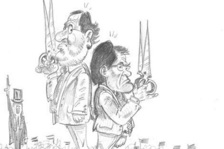 Sin embargo -y casi sarcásticamente como consecuencia de lo anterior- el punto de vista político nos describe claramente un cuadro con todas las trazas de un choque de trenes pilotado con precisión de relojero. No es que, como se alega, "resulte increíble" que "con la que está cayendo", en "un país asfixiado por los intereses de la deuda", en una UE que nos exige renuncias de "soberanía fiscal" venga a plantearse ahora un órdago "secesionista" desde una comunidad autónoma "a punto de ser rescatada". Antes bien, esta huida hacia delante o hacia ninguna parte, bajo la partitura de Els Segadors y envuelta en la Senyera, es una consecuencia más, y efecto colateral, de la interminable crisis de legitimación con que el pésimo manejo de los ataques contra el euro ha sumido a toda Europa.