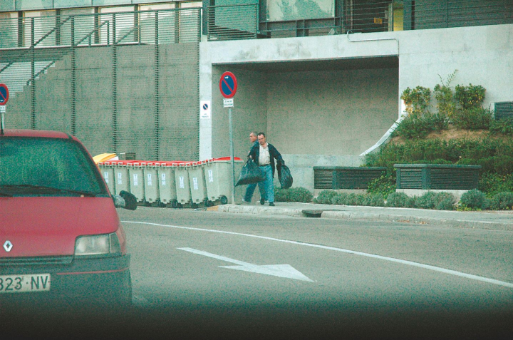 La tercera imagen es, más que una instantánea, un manifiesto radical de periodismo. El protagonista es uno de los gigantes del reporterismo en España, Juan Luis Álvarez, que falleció el pasado 25 de noviembre. La foto se tomó un amanecer de octubre de 2006. De fondo, una de las fachadas de la sede del Ministerio de Asuntos Exteriores. Juan Luis, al que llamábamos Fiti, se apresuraba con dos grandes bolsas de basura en la mano. Había que cogerlas en el intervalo que mediaba entre que el servicio de limpieza las sacara a la calle y que el camión de la basura llegara con su cansino paso.