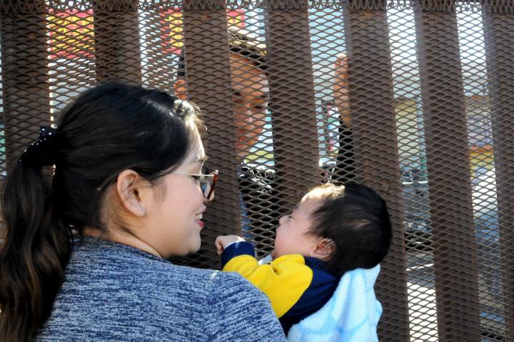 Foto: Samanta, en Estados Unidos y Marco, en México, con un muro de por medio, se ven en la frontera con su joven hijo Franco Emilio, de dos meses/EFE