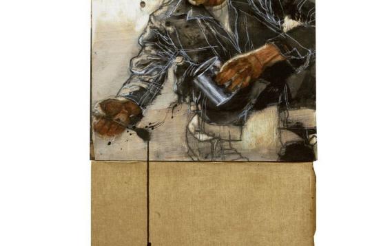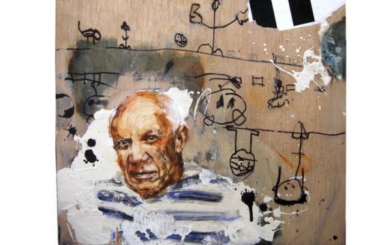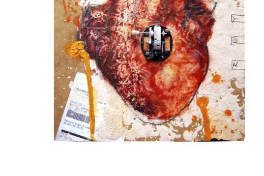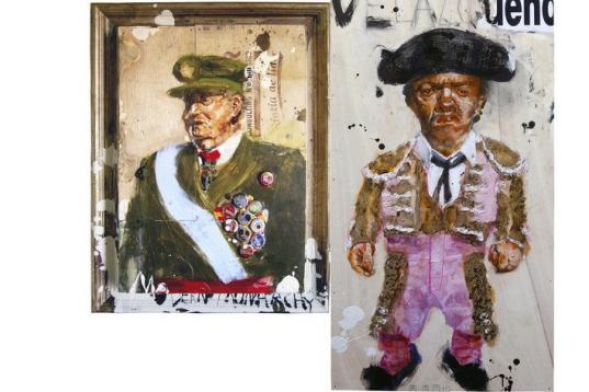 Un pálpito me indica el tema y, como los raíles de un tren, dirige mi mano y el agua teñida con pigmentos inunda mi universo: figuración expresionista. La presencia en mi obra de Cy Twombly, de Basquiat, de Tàpies, es evidente. El texto se añade como materia expresiva, subrayada por la plasticidad de las letras impresas que acentúan el mensaje: los periódicos navegan por mi subconsciente, como románticos y elegantes buques escuela.