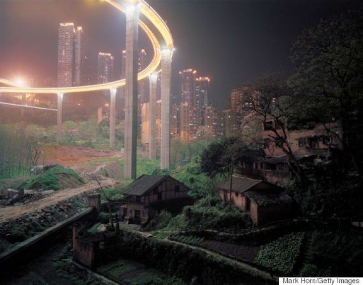El puente Chaotianmen, completado en 2007, contrasta con las zonas más rurales de Chongqing (China). (Mark Horn. Getty Images)