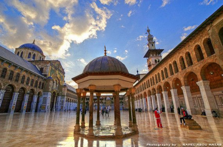Esta mezquita es una de las más antiguas y grandes del mundo, fue construida en el año 706 sobre una catedral bizantina y se la conoce como la Gran Mezquita de Damasco. En su interior, hay un mausoleo que contiene la tumba de Salah El Din. Se dice que el prototipo de la mezquita de los Omeyas inspiró la construcción de la mezquita de Al Azhar del Cairo, la mezquita de Córdoba de España y la Gran Mezquita de Bursa de Turquía.