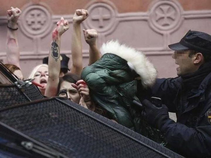 Si bien para una activista de FEMEN es común enfrentarse a cargos como desórdenes públicos o resistencia a la autoridad (aunque no estemos en absoluto de acuerdo con ellos, pues nuestras acciones constituyen un ejercicio pacífico del derecho a la libertad de expresión), verse las caras en los tribunales con la religión tampoco es una novedad. Así ocurrió con FEMEN en Francia por acciones como la de Notre Dame o la Madelaine, donde las activistas salieron totalmente libres de cargos.
