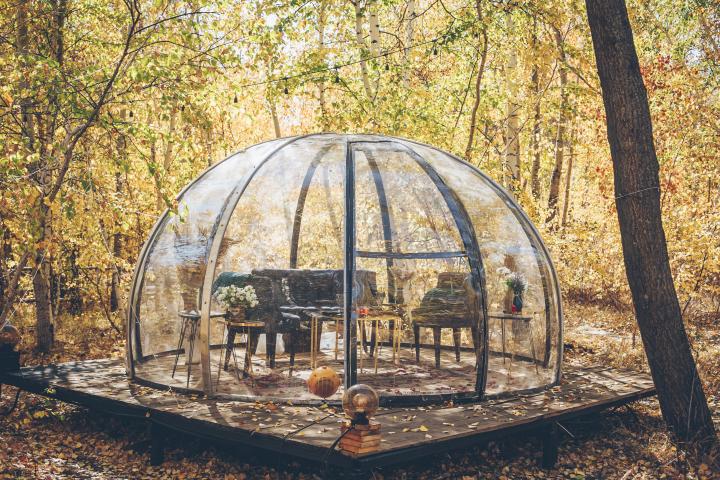 Estas tiendas de campaña transparentes mezclan el glamour con el confort.
