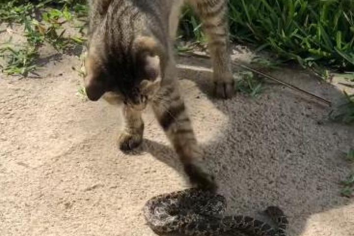 Un gato callejero de Ibiza se ha ganado el aplauso vecinal y la admiración en redes sociales tras ser grabado enfrentándose a varias serpientes en plena calle. En las imágenes, el felino no solo no huye ante los ofidios, sino que se atreve a propinarles "collejas" con su pata para mantenerlas a raya.