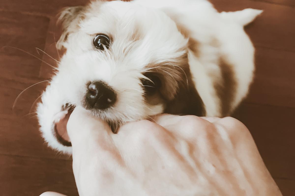 Es una de sus formas de jugar. Normalmente entre ellos juegan a 'mordiquearse' pero sin actuar de forma agresiva. Así que, si tu perro te mordisquea la mano, su intención es jugar contigo como lo haría con sus amigos perrunos.