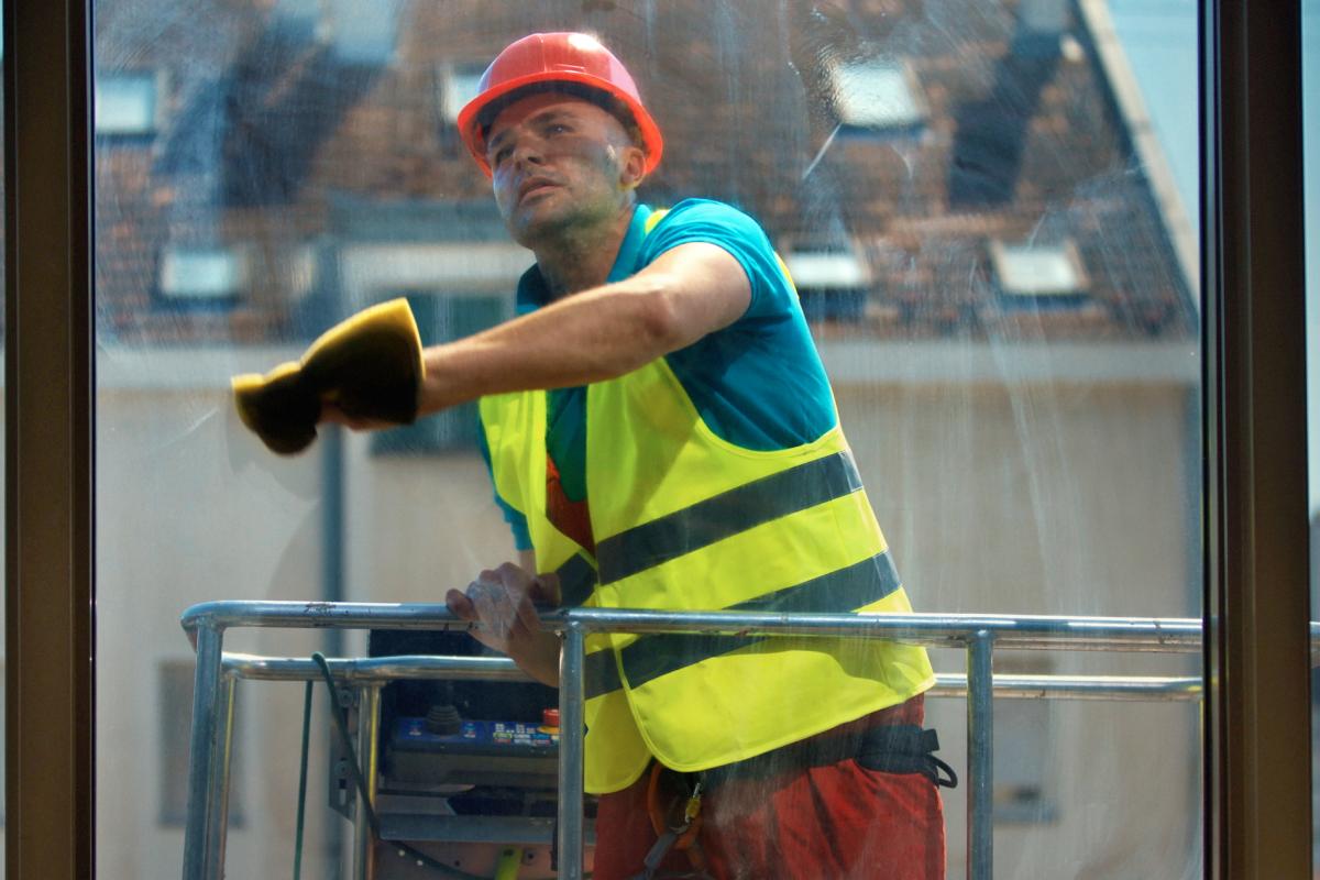 Un limpiador de ventanas tiene dos lindos acompañantes durante su jornada y los usuarios sentencian: "Estaría dispuesto a trabajar horas extras todos los días"