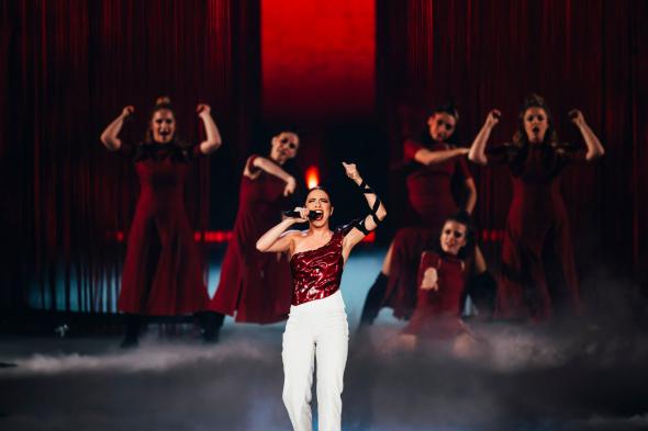 La representante, perfecta vocalmente durante los tres minutos de actuación, apostó por el sonido más tradicional para mostrar a toda Europa el valor de la cultura española a través de una candidatura auténtica, mayúscula y potente. Como si se tratara de una pieza cinematográfica, la actuación derrochó a través de cada fotograma puro arte. Una explosión de sensaciones al calor de la prodigiosa voz de la artista y la fuerza visual de su puesta en escena.