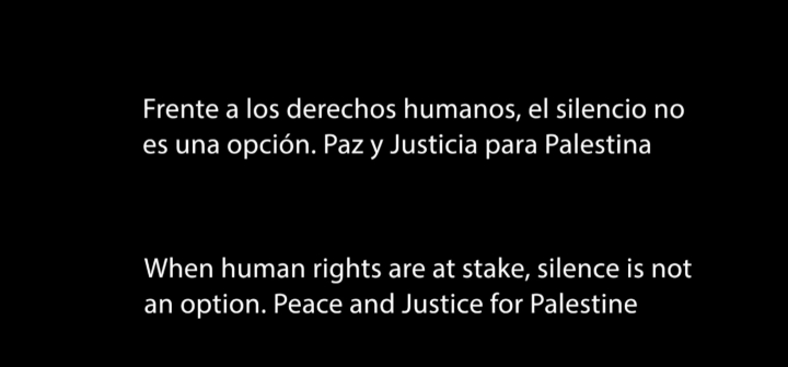 "Frente a los derechos humanos, el silencio no es una opción. Paz y justicia para Palestina", han podido leer los espectadores en español y en inglés sobre un fondo negro. Un mensaje que servía de respuesta a las amenazas de la UER (Unión Europea de Radiodifusión) de imponer a la cadena española una multa por haber hecho referencia al conflicto de Gaza durante la semifinal del jueves.