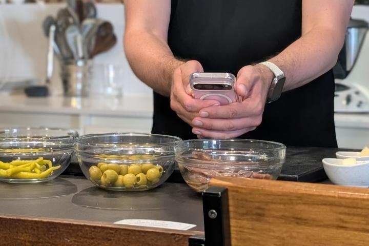 En primer lugar, se le plantea al asistente hacer uno de los platos, un entrante, y se le muestran a través de la cámara los ingredientes disponibles: queso, anchoas, aceitunas, piparras y se le añade en un último momento melón, que se le pide que lo integre dentro del plato. ¿El resultado? Una deliciosa gilda fácil de hacer e ideal para visitas en casa.