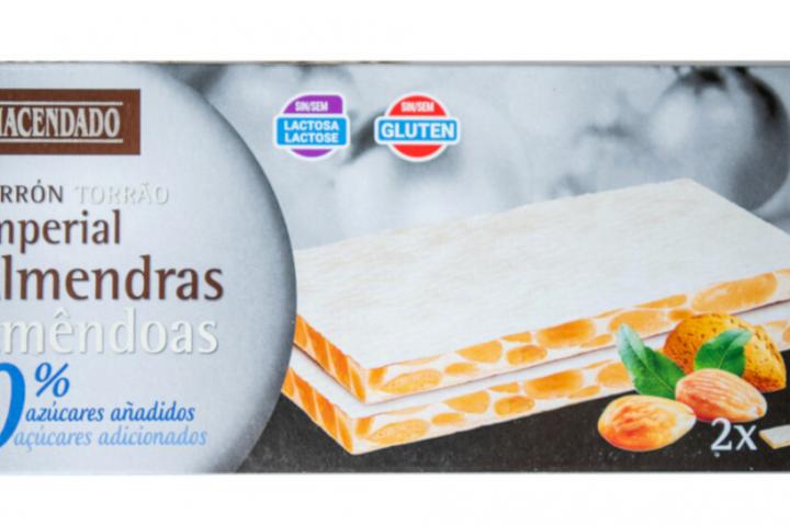 Uno de los que más sanos, sin olvidar que es un producto de consumo ocasional, es el turrón imperial de almendras 0% azúcares añadidos de Mercadona, que nutricionalmente es más beneficioso que otros por incluir menos aditivos o por no tener otros elementos calóricos como el chocolate o la fruta escarchada.