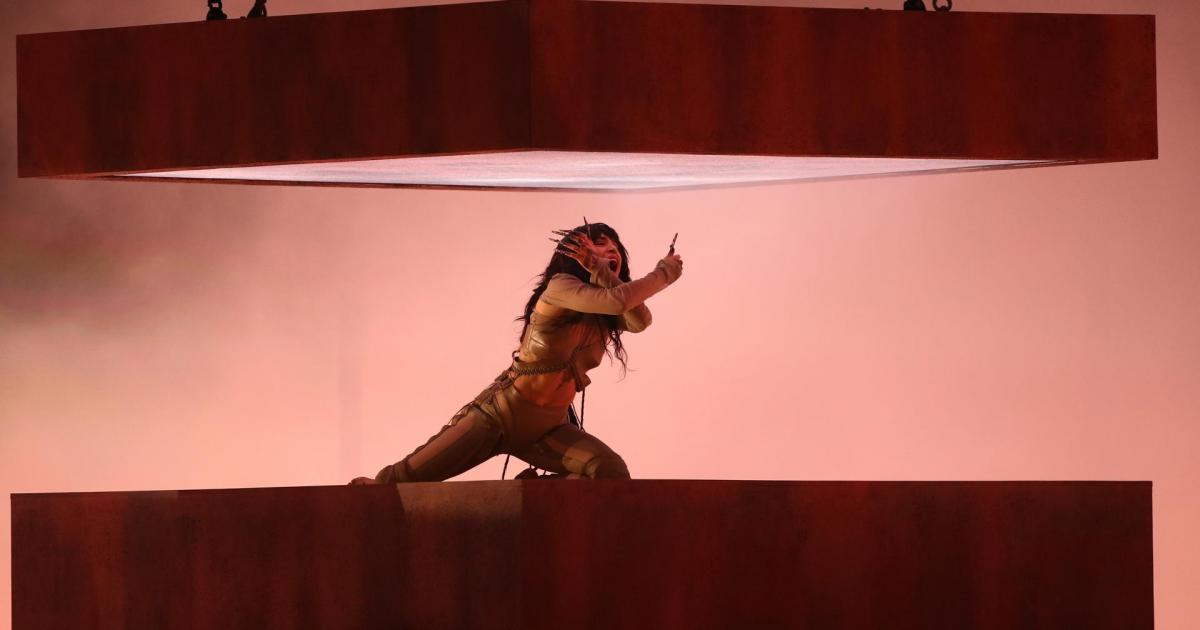 Eso sí, la imponente puesta en escena ha estado presente en la actuación, en la que se emula una tormenta de arena y la artista canta entre dos enormes plataformas, una de ellas colgada del techo y que se ha ido moviendo durante los tres minutos de canción.