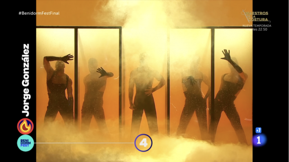Caliente es la canción que Jorge González ha defendido este sábado en la final del Benidorm Fest 2024. Un tema con tintes latinos y coreografía hot, rematada con aires de sauna gracias al humo que acompañaba su actuación. Sin embargo, no ha salido como en la semifinal ni como el público esperaba.