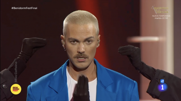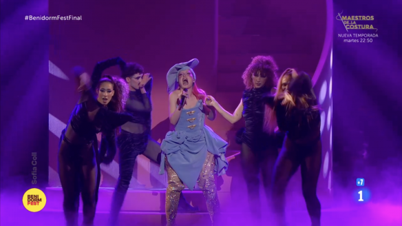 Su canción incluye fragmentos en catalán, inglés y español y ha puesto en pie al público de la final del Benidorm Fest. Su llamativa puesta en escena y sus cambios de vestuario son algunos de los puntos más llamativos de su propuesta, una de las más eurovisivas de la noche.