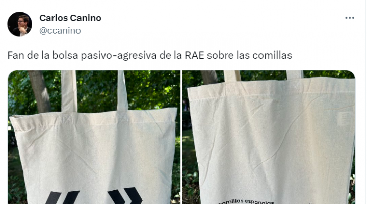 La foto de la bolsa en cuestión la ha compartido en Twitter Carlos Canino, uno de los agraciados que ha podido conseguirla. Él mismo la ha calificado como la bolsa pasivo-agresiva sobre el uso de las comillas.