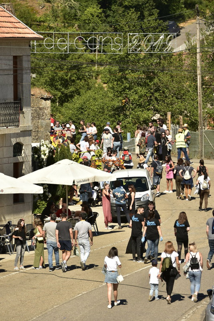 A falta de horas para que arranque esta nueva edición, la aldea está completamente volcada y engalada para la ocasión. “Si vas ahora mismo están todos los balcones y las casas con el perro amarillo —cans en gallego significa perros—, que es el emblema del festival”, cuenta Pato, que revela que el certamen empieza a sentirse nada más empezar mayo.