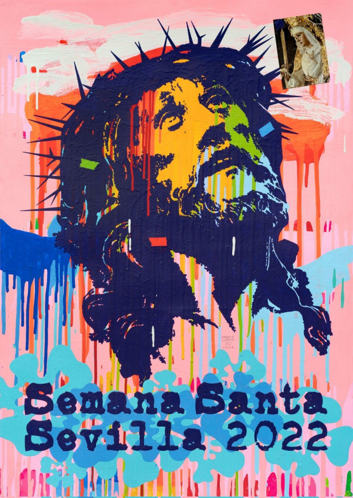 Su última aportación al mundo cofrade fue el cartel de la Semana Santa de 2022 con el cristo de El Cachorro, elegida por él y también de estilo abstracto. "Es una imagen que siempre me ha transmitido bastante, a nivel de cultura esa imagen, además es muy de Triana y se me apetecía hacerlo y lo hice de él", señala.