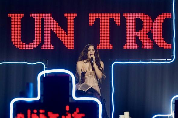 La catalana interpretó Reliquia entre unas cruces de luz y bajo una impresionante lluvia de partituras.