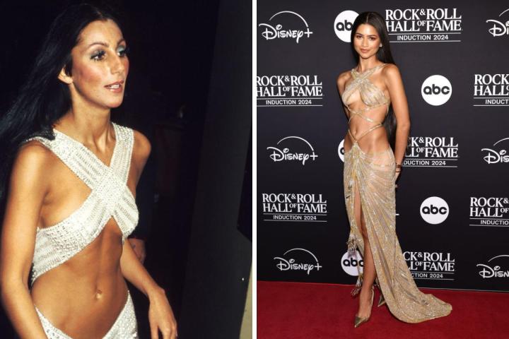 La encargada de hacer los honores y anunciar la entrada en el Salón de la Fama de la cantante de The Shoop Shoop Song ha sido la actriz Zendaya. La intérprete ha lucido un vestido salpicado de brillibrilli con el torso totalmente destapado, muy similar a los monos que solía llevar Cher en la década de los 70.