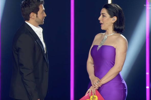"Estas mierdas no pueden pasar", se lee en sus labios, mientras de fondo suena la actuación de Camela, que acudieron como artistas invitados.. Sus gestos son de evidente malestar y disgusto e incluso se ve que, en un momento dado, se acerca a hablar con el artista afectado, Almacor.