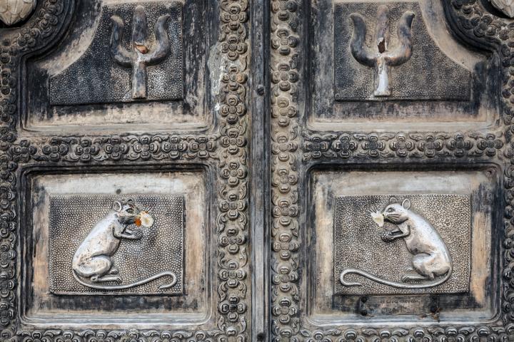 El templo, cuya fundación se atribuye al maharajá Ganga Singh hace más de 600 años, fue construido en honor a Karni Mata, una mística venerada como encarnación de la diosa Durga. Su arquitectura en mármol blanco, con puertas de plata y columnas delicadamente decoradas, acogen a sus miles de ratas sagradas conocidas como kabba.