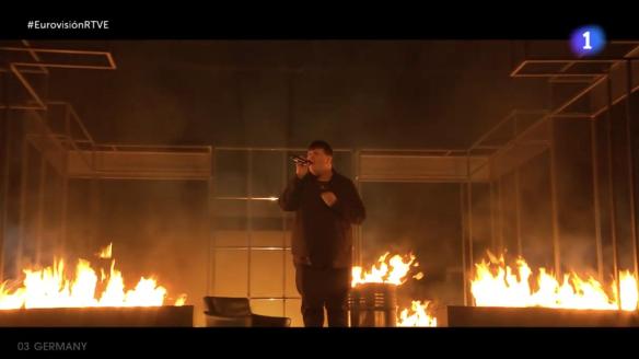 ISAAK, representante de Alemania, ha montado todo un espectáculo de fuego y pirotecnia para calentar al público del Malmö Arena con Always on the run.
