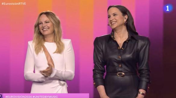 Las presentadoras recuerdan el lema de Eurovisión de este año, que ha estado en el punto de mira durante la última semana por la participación de Israel.