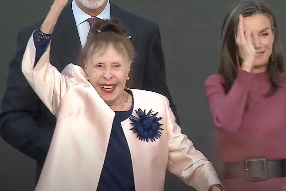 La veterana actriz, de 94 años, ha subido a la tribuna con ayuda y ha charlado unos segundos con los reyes mientras recibía su medalla, visiblemente emocionada. "Enhorabuena, qué guapa", le ha dicho la reina Letizia, que le ha dado un gran abrazo.
