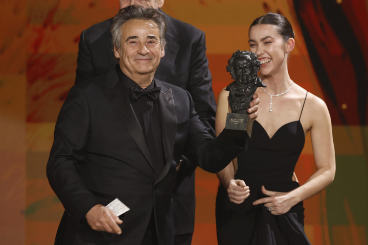 En la categoría de Mejor actor también se cumplieron los pronósticos y Eduard Fernández se alzó con el premio por Marco. Lo recibió de manos de su hija, Greta Fernández, a la que le dedicó el galardón. "El peligro del fascismo, el peligro de un saludo ambiguo, los campos de concentración... Cuidado que vienen a caballo, vienen tiempos difíciles", lamentó al recoger su Goya.