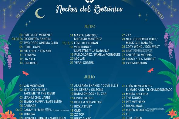 Por meses, en junio —del 3 al 30— será el turno de Omega de Morente, Bandini, Ethel Cain, Lia Kali, Ginebras, Love of Lesbian, Veintiuno, Pablo López, M-Clan o Yerai Cortés. También subirán al escenario Zaz o Van Morrison, que cerrará el mes.