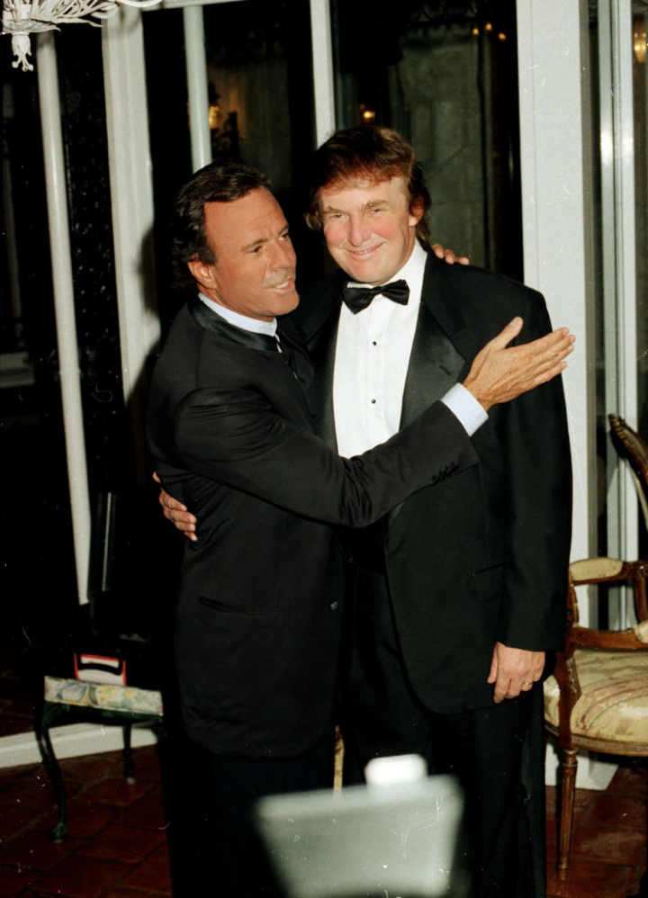 Allí, fue a las fiestas que Donald Trump, entonces solo empresario, organizaba en Mar-A-Lago pese a las críticas que le dedicaría el español una vez que alcanzó la presidencia estadounidense por su actitud ante la población latina, pero también a cantar en el concierto de Navidad de 1983 en la Casa Blanca durante el gobierno de Ronald Reagan.