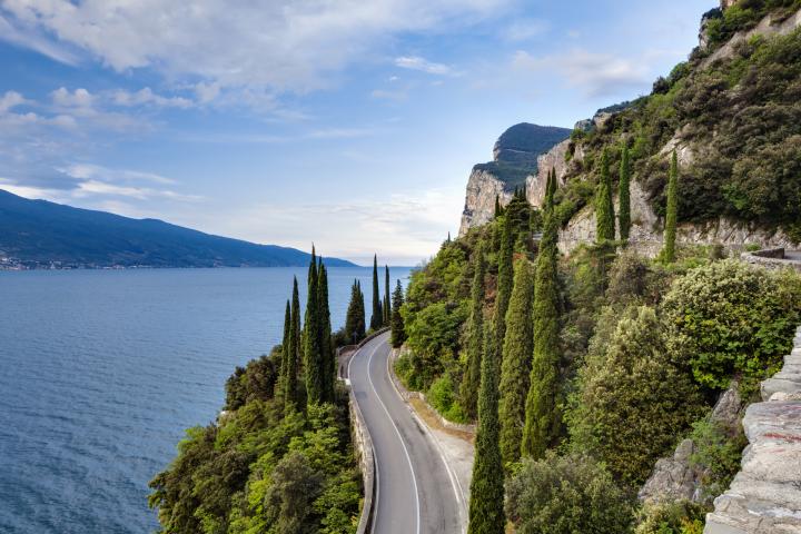 Pero su extensa longevidad no es lo que más destaca de la carretera. Al menos, no lo único. Uno de los aspectos más llamativos de esta es las vistas que se pueden vislumbrar mientras se recorre, puesto que se encuentra localizada en una de las orillas del Lago di Garda.