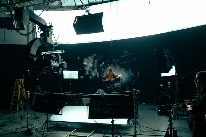 "Para una de las secuencias del segundo episodio Álex me dijo, 'vi las nubes alrededor de las cuatro torres y quiero empezar con eso en la serie'. Yo le dije que era imposible conseguir esos efectos grabando en la realidad pero que podíamos hacerlo en un set virutal", explicó durante la visita a uno de esos sets Migue Amoedo, visual designer y productor ejecutivo de El refugio atómico y de Vancouver Media.