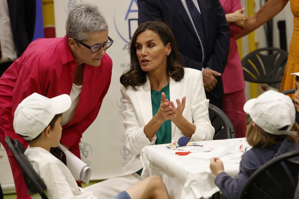 Además de pasear por las casetas, la reina también se ha acercado a la zona infantil de la feria durante su visita. Allí se ha sentado en una mesa junto a un grupo de niños que estaban participando en un taller.