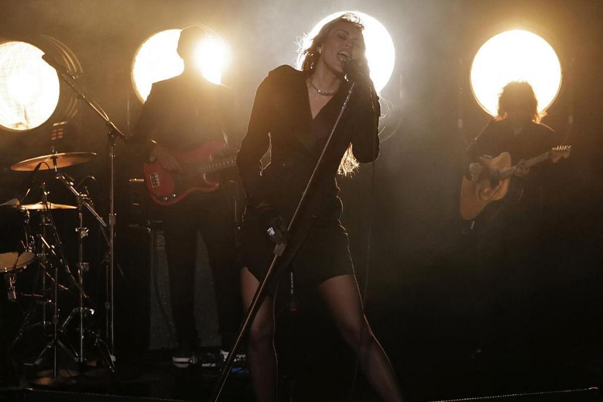 Cyrus interpretó, entre otros temas, Easy Lover y su reciente éxito ganador del Grammy Flowers, describiéndolo como "una de las canciones más emocionantes que he lanzado al universo".